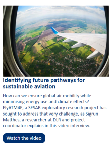 The video created by the FlyATM4E project to explain how aviation can become climate-friendly has been featured in the October edition of the SESAR 3 JU e-news. Entitled “Identifying future pathways for sustainable aviation”, this section of the newsletter introduces … More FlyATM4E is in SESAR 3 JU e-news! - FlyATM4E Stakeholder Workshop: highlights